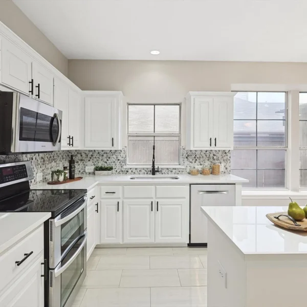 Every corner was reimagined — walls came down to allow natural light to flow freely, while fresh white paint and minimalist finishes made the space feel larger, cleaner, and more serene. Custom cabinetry, sleek countertops, and warm wood accents added balance and warmth to the all-white aesthetic.